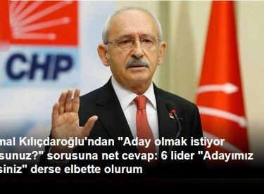 CHP lideri Kemal Kılıçdaroğlu, Cumhurbaşkanı adayı olmak isteyip istemediği yönündeki soruya ilk kez net bir yanıt verdi. CHP Genel Başkanı, “6 lider ‘Adayımız sizsiniz’ derse elbette olurum” dedi.